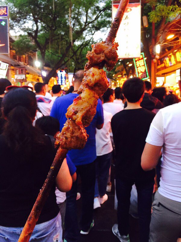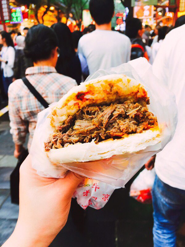 叮៎🔔叮ૢ🔔,闹钟响了,4:30的还是5:30的?不太记得了,反正6:30在回民街已经吃上了老白家的肉夹馍了。老长的队伍了,这个点的回民街已经拉上了左右分流的警戒线了。如此还是挤的前胸贴后背,自行脑补画面。咱来聊聊肉夹馍,🍖多,馍香。就是🍖吃起来感觉有种木头泡水里的味道。你尝过木头泡水里的味道吗?没有!那咋能瞎说呢,我没瞎说,不知道是不是汤汁的原因,要么就是看他剁肉的那个木砧板给我造成的心理阴影。我旁边不是站着一大活人吗?是的,我和燕子说了,她咋回答的,我忘了,燕子,你再看到我这游记的时候回答我一声。吧唧吧唧还是吃完啦,继续找吃滴,豆腐皮,看上去不错哟,就喜欢吃口味重滴,好吃,这满大街的烤肉我咋能错过呢,来一根红柳烤肉,咋就一根呢?你旁边姑娘看着呀?是的,她就看着她不吃羊肉,没了这口福哟。挤了一个来回没瞅见啥觉得好吃了,一直想吃黄米糕来着,看着就觉得腻到了,最终没伸手,遗憾了。迅速撤离回民街,这次没有往回撤,一直从回民街往前就是鼓楼。