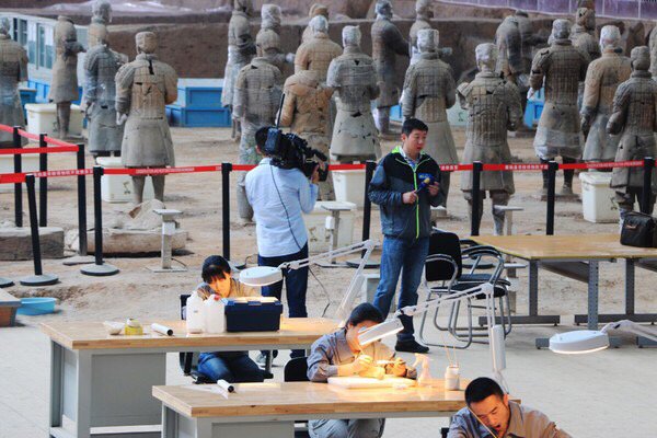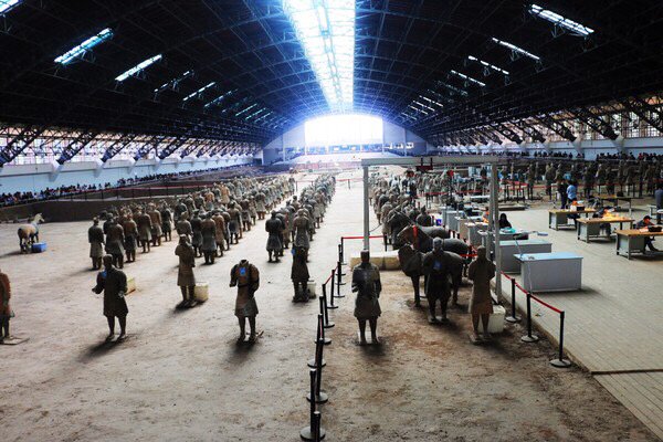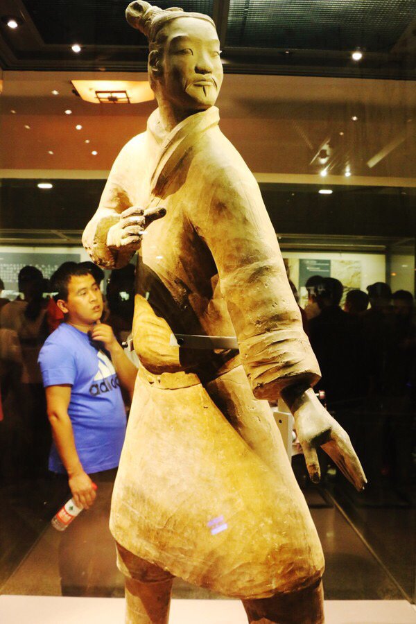 今天就比昨天早了很多,而且经过昨天一折腾,今天已经轻车熟路了。直奔秦始皇兵马俑,路上还偶遇到一老乡大叔(这老乡可不是安徽那么大的老乡了,范围得缩到安庆了),一开始还是蛮聊的来的,他就想让我们给他拍照,我们也觉得这是难得的一种缘分啊。最终在请讲解的时候出现了分歧,才发现我们的观点大不相同,最终租了讲解器,感觉他也没听,倒是一直催着我们看,你不了解它,不懂它,能看出个啥?就是拍张照片证明到此一游吗?最后坚持了自己的想法,没和大叔一起了。