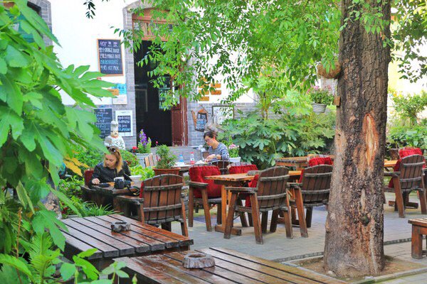 这个门牌是倒着挂的,好像是说希望天堂里的女主人也可以看到。到的时候外面的座位都坐满了人,被服务员告知没有位子了,心碎了,但还是进去看了一眼,火塘边坐满了人,不过这个时候驻唱歌手没有在唱歌。没有停留一会儿,就转身离开了,感触还是蛮大的,心里隐约的难过,本是两个人的丽江,如今是他一个人的西楼。