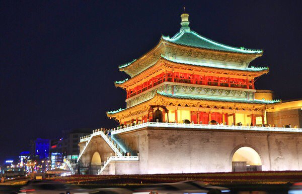 位于西安市中心,明城墙内东西南北四条大街的交汇处。建于明太祖洪武十七年(1384年),初建于今广济街口,与鼓楼相对,明神宗万历十年(1582年)整体迁移于今址。
