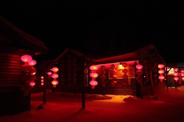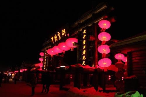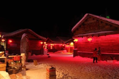 一觉醒来天已经黑了,决定出去转转雪乡的夜景