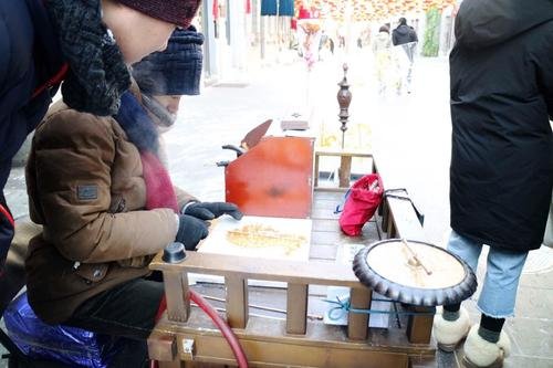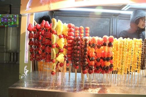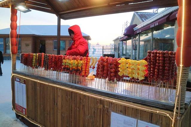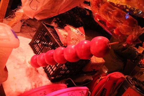 又见冰糖葫芦!北方的冰糖葫芦!真的是冰!糖葫芦!买了串草莓试试,结果要咬进去完全僵硬,简直就是草莓大冰块,小小的一颗颗的那个蛮好吃,叫不来名字!南方的冰糖葫芦只能是糖葫芦,哈哈哈!