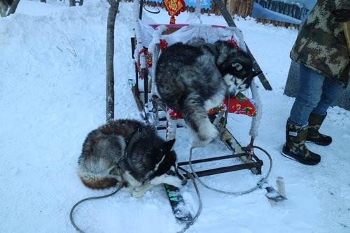 在小康那里报了一个马拉爬犁帮我们跑5公里到达山脚下再开始翻阅