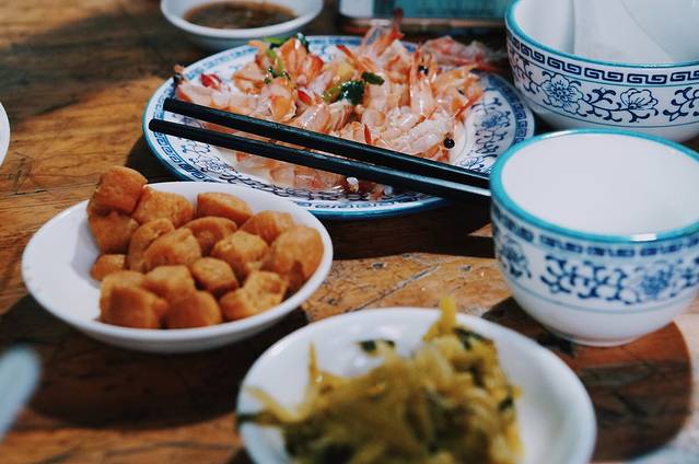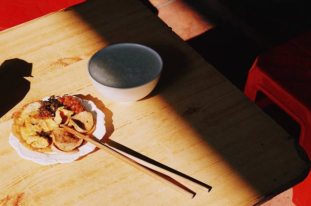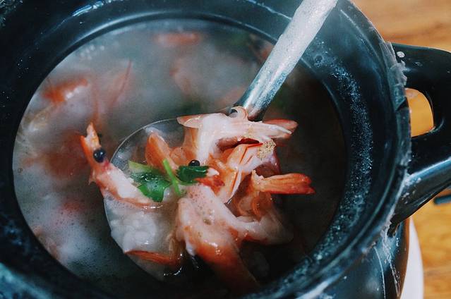 关于把这道食物列进前五名,我和朋友存在争议,璐璐认为她在杭州吃过比这更棒的。不过对我来说,之所以对这道虾粥念念不忘,除了味道好之外,还因为一部分情感因素。第一个故事要从很久以前说起,记得刚来北京的第一餐,就是朋友极力推荐的一家潮汕砂锅粥,那是一份分量惊人的蟹粥,那时候正赶上冬天,我跟朋友在店里边吃边聊彼此近况,有说有笑开心得不得了,粥的味道我忘记了,朋友带来的暖意我倒始终记得;第二个故事就是这锅虾粥,来潮汕的前两天我并没有休息好,因此身体和头脑一直处于分裂和游离状态,尤其从第二天一早开始,头痛欲裂到两眼发昏,直到遇见这锅虾粥,喝完一碗,头痛瞬间消失,忽然觉得胃口都被重新开启了,接着这锅虾粥的五分之四都进了我一个人的肚子……璐璐只在旁边为我加油助威——我终于开始敞开胃口吃东西,总算不是只有她一个人在战斗了。