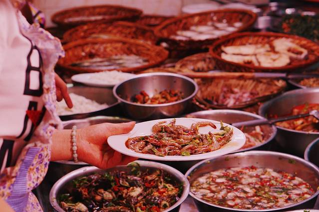 那天早晨,我跟朋友路过西马路边一家早餐铺子,临时起意决定尝一尝这里的白粥,老板先为我俩盛好了粥,接着打开旁边用纱布遮挡的小桌台让我们从中选择配菜,我和朋友着实被惊呆了……配菜种类之丰富简直壮观。对于我们俩这种外来游客,连这些小菜的名字都叫不出来,更别提在短时间之内做出正确选择,最后还是得靠老板为我们细心挑选了一碟。