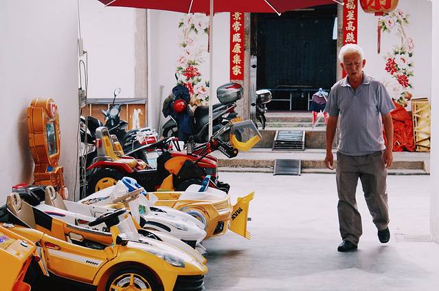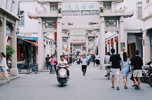 潮州的交通工具主要为摩托车、自行车,三轮车大概是专门为外地游客准备的。街上看起来人来人往却感受不到拥挤,生活在这里的老年人悠闲,年轻人忙碌,孩子们享受着快乐,小巷子就是他们生活的全部直径。几年前我在广州小住,每当走进这样的街巷,会不自觉开始迈起小碎步,姿态扭捏起来,幻想自己是夏日岭南深居简出的西关大小姐。
