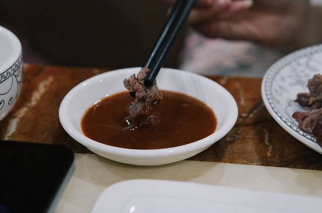 让我们吃惊的不只是牛肉的鲜嫩,还有店里独家调制的沙茶酱,口感胜过之前吃过的所有,浓郁甘甜但没有一丁点腻味,牛肉的“嫩”完美搭配了沙茶酱的“甜”。