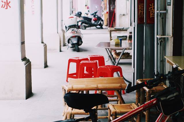 抱着满足味觉的目的来到潮州,却首先爱上了这座小城里无数街巷营造出来的电影质感。一直认为自己不适合国外生活,西方城市里的街道固然干净整洁,人与人之间礼貌周到,但是有礼貌和距离感有时候本来就是一回事,我当然喜欢安静舒适的独处,但这是对于内部空间的要求,家以外的街道,应该是热闹而且有烟火气的。回到这样的老城,环顾四周完全谈不上“精致”和“美”的地方,让我感到无比自在。是这样的,潮州最迷人的地方,不仅仅在于种类繁多的美食,还在这些彼此交错纵横的小巷与街道里。