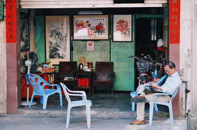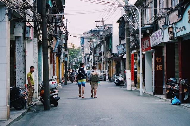 刚走进西马路,以为无意中闯入了台湾电影,天蝎座的张士豪骑着脚踏车、背着左摇右晃的书包向我招手,牙齿可真白……再走一阵子,又觉得自己闯入了贾樟柯的领地,歪着脑袋四处晃荡的梁小武正与我擦肩而过……可当我回过神来,看看四周的人,不慌不忙招揽生意的小摊主,翘着二郎腿看报纸的老中医,边包粽子边跟街坊聊天的阿婆们,皱着眉头翻书的书店老板,摩托车后座上手捧玫瑰的花裙子小丫头,在路边和弟弟一起浇花的小男孩们,还有几个像我们一样四处张望的游客……这些片段已经拼凑成了一部好看的电影。