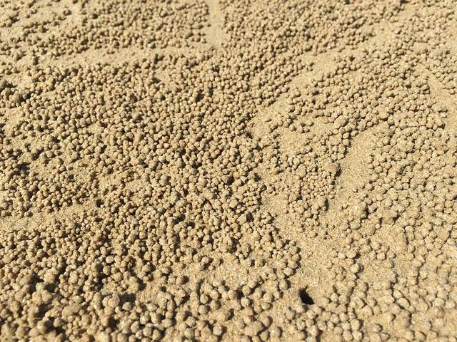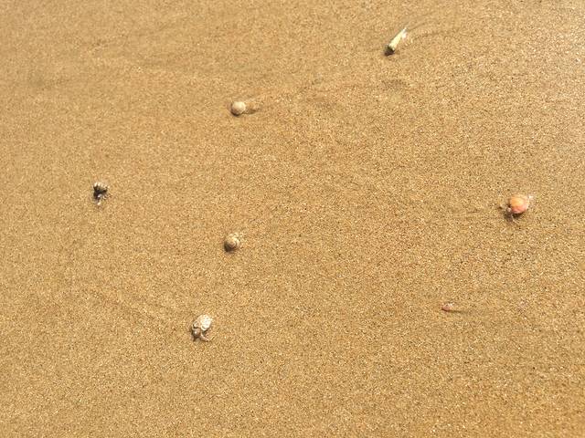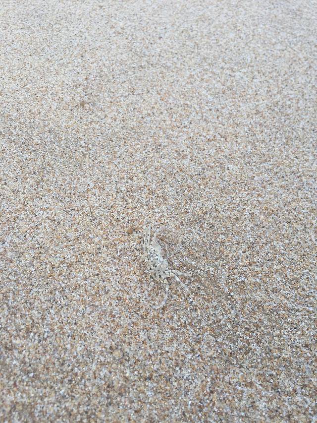 这边也有很多小螃蟹,比海棠湾的还要小,之前一直不知道的洞原来是螃蟹打的。很明显,这边的海滩沙的颜色比起海棠湾和亚龙湾黄很多,沙质也要粗很多。