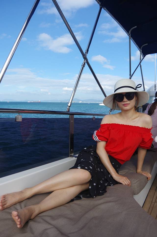 海边太阳大,风也大,一定要注意帽子跟眼镜,同行的雷小妹儿价值两千的墨镜就吹海里面了,真是听者伤心闻者落泪。而且海上天气变化太快了,乌云随着海风吹着到哪儿,雨就下到哪儿,出海还是要出太阳照着海水天空才好看,这都是看运气的。