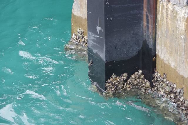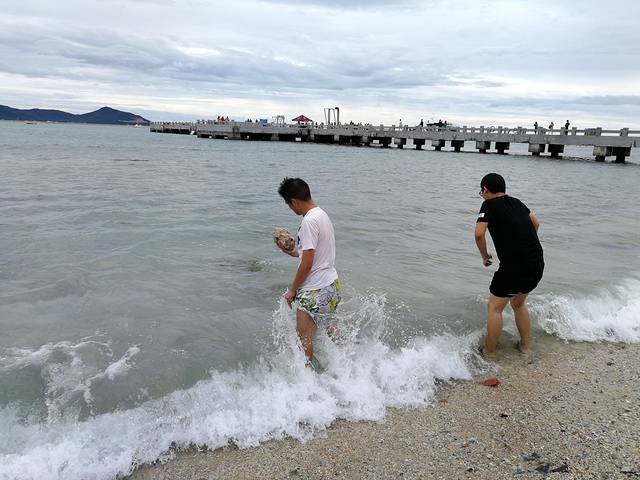 继续往前走有坐桥,相当于一个码头,选择在大东海潜水就是在这个地方,桥墩上面不知道长的什么,很多,也有很多螃蟹。