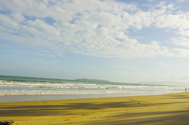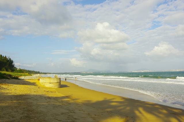 海棠湾这边沙质还算不错,但是开发晚,沙滩边上很多树枝,贝壳,石头和垃圾。在这边走走是要注意点的,划伤脚再下海怕是不好玩儿的了。这边的海水特别清澈,应该是比亚龙湾还清澈,但是浪特别大,不适合游泳。倒是这里成了冲浪爱好者的天堂。