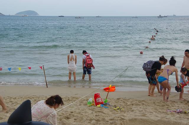 放完东西直接打的又去了大东海,这边的水更清,更适合游泳,但是感觉沙更粗。特别多的外国人,感觉比中国人还多,给人感觉像在外国一样。后来了解到大部分都是俄罗斯人。而且大东海这边好像还有很多军事基地,还有个潜艇基地呢,也不知道有没有间谍。