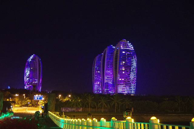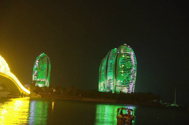 吃得太饱,自然要去海边走走消化下,顺便看下凤凰岛的夜景。在海边遇到一对东北夫妇,这边有很多东北人买房子,到了冬天就过来住。他们下了两站网捕鱼,听他们说现在不行了,十年前三亚湾这个地方下一次网,网就不能再用了,上面全是鱼。