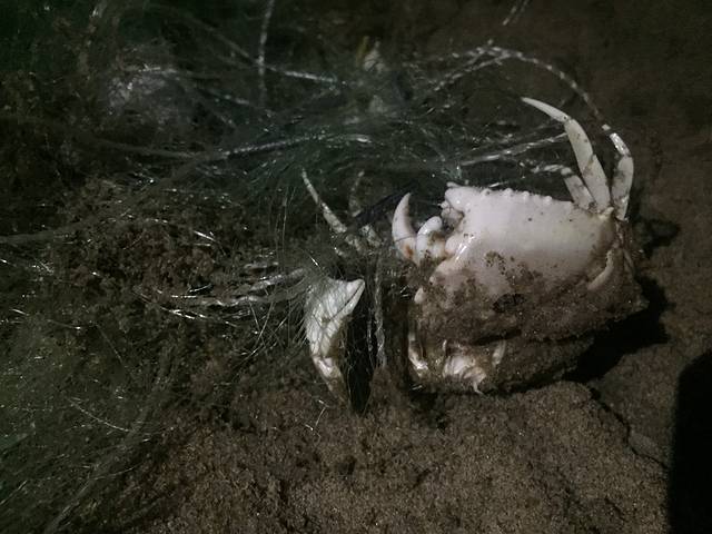 东北夫妇抓到的面包蟹,这种蟹没什么肉,鳌特别有力,要小心