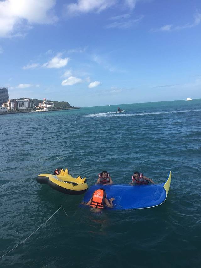 说是出海,其实就到了小东海,而且离海岸其实很近,水深差不多十多米的地方,跟想象中差距蛮大。不过也正常,这么小的船也不敢走太远,海浪威力是真的大。至于钓鱼,吗的,就是个营销噱头,钓得到个毛啊,工作人员都说了,好钓早辞职钓鱼去了,不过多多少少算是感受了一把。至于浮潜,虽然提供给你浮潜设备,但是必须穿着泳衣,就只能把头埋下去喝海水,这个也是水的。不过摩托艇是真的爽,因为离海岸远,人少,完全让你自由发挥,不像海边体验摩托艇,100多块都是教练开,你坐着。