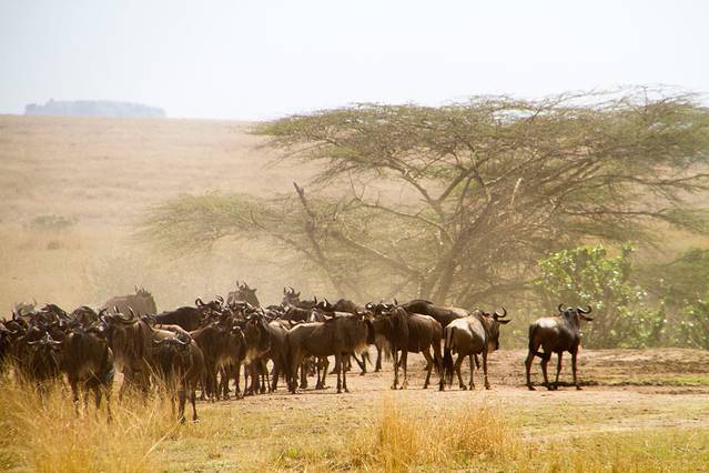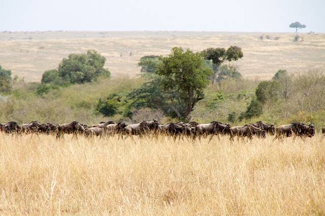 角马的队伍就是这样排成一列纵队,不紧不慢的向河岸边集结。