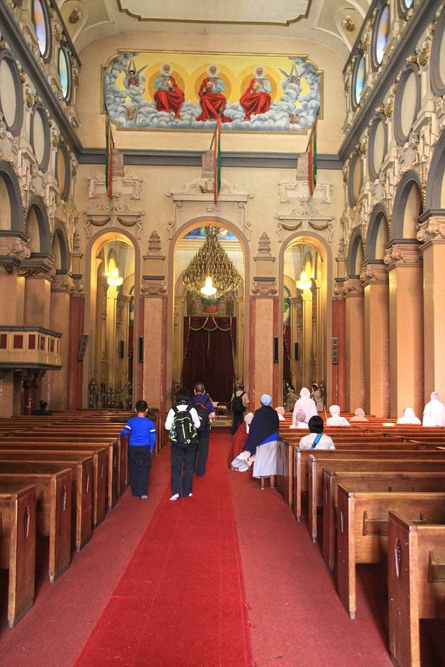 圣三一大教堂,是埃塞俄比亚重要的一个宗教胜地,建于1900年代早中期,埃塞俄比亚的前国王海乐瑟拉希夫妇都安葬于此,教堂内的黑色花岗岩陵寝非常值得一看,教堂有专门的导游讲解,每天会有定时的唱诗,有时还会给穷人布施。教堂外部很漂亮,很适合拍拍照。教堂的彩绘玻璃非常漂亮,不过里面很黑,所以走路要小心。这个教堂反映了埃塞俄比亚的基督教历史,也反映了国家的政治史和文化史。
