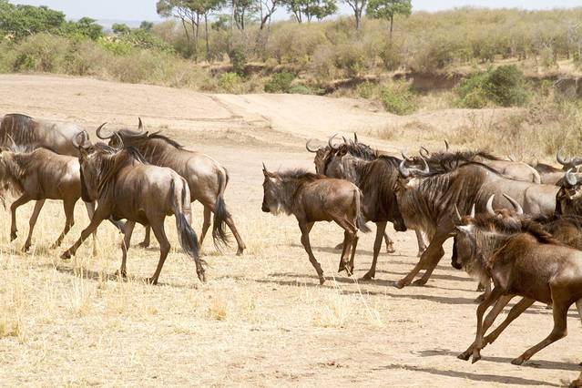 注意河岸在右手边,这些角马明明是往回跑啊,真是急人,难道一场大戏还没有上演就要谢幕啦?