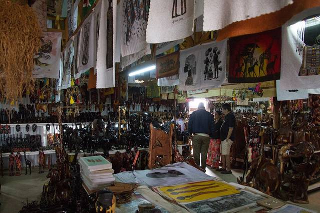 服务区的纪念品商店,大量手工制作的各种纪念品。收取美元,可以砍价,我买了一个非洲乌木的长颈鹿,要价80刀,20成交。