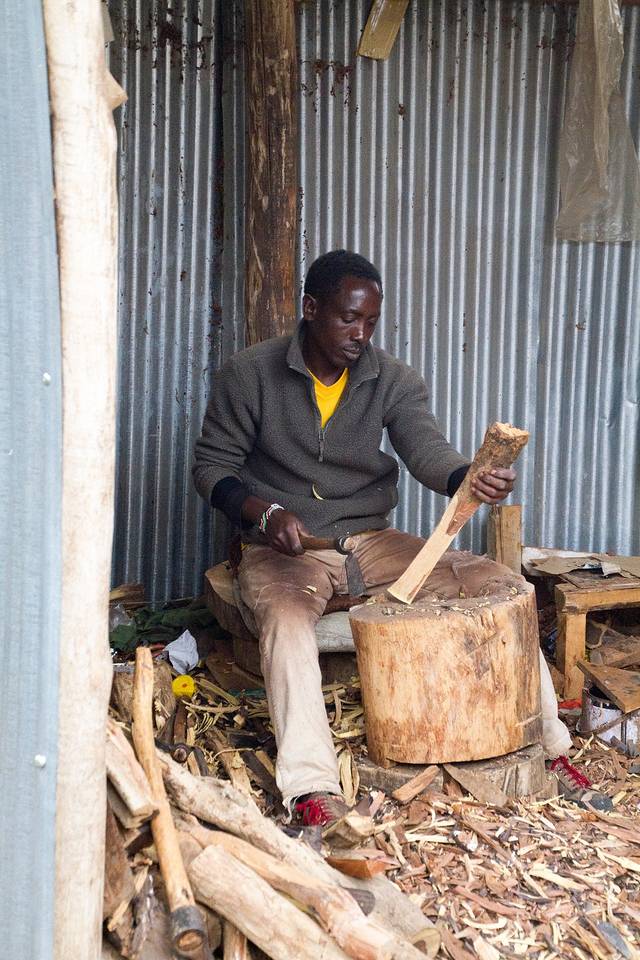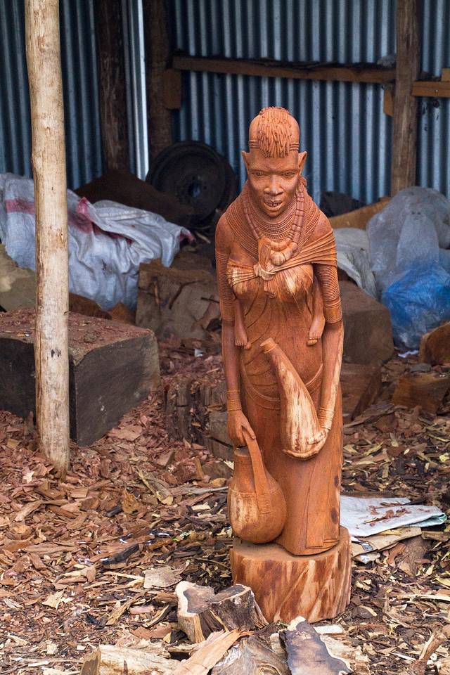 前店后厂,独具特色的非洲木雕正在制作过程中。