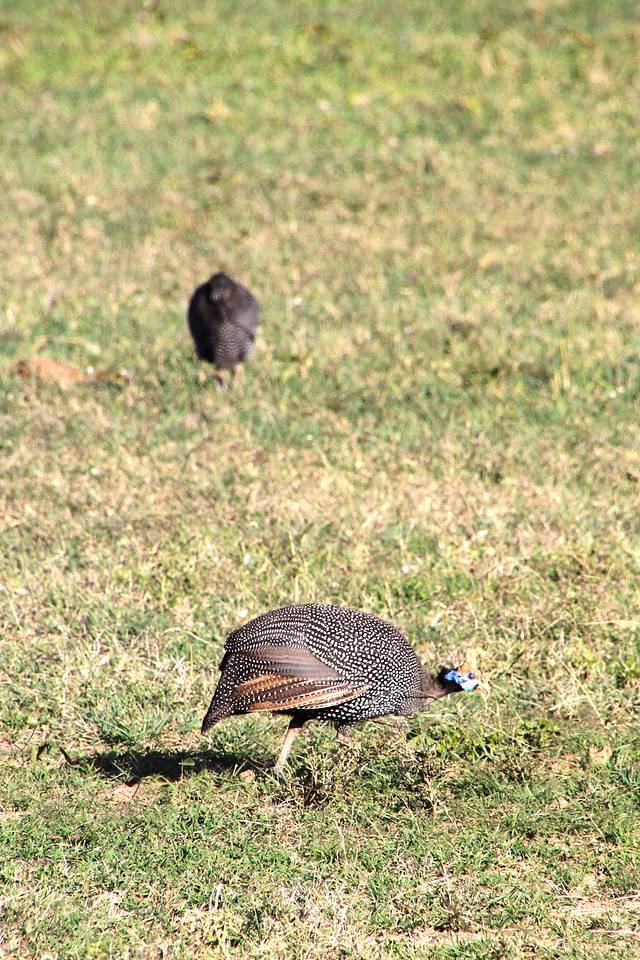 盔珠鸡,分布于非洲大陆和马达加斯加岛,雌雄羽色相似,为黑色基底上遍布白色点斑,如同珍珠。
