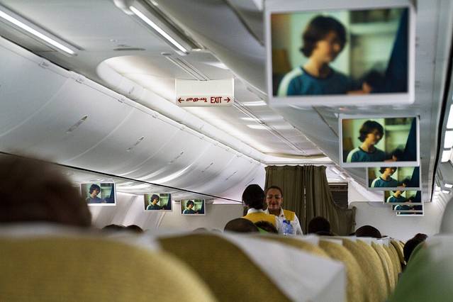 往返都是乘坐埃航班机,好像是空客360,座位,经济舱3:3:3安排,比较舒适,飞机很新。空乘基本非洲空中小姐,个别一、两位中国籍,可以用英语交流,机舱播音安全提示没有华语。