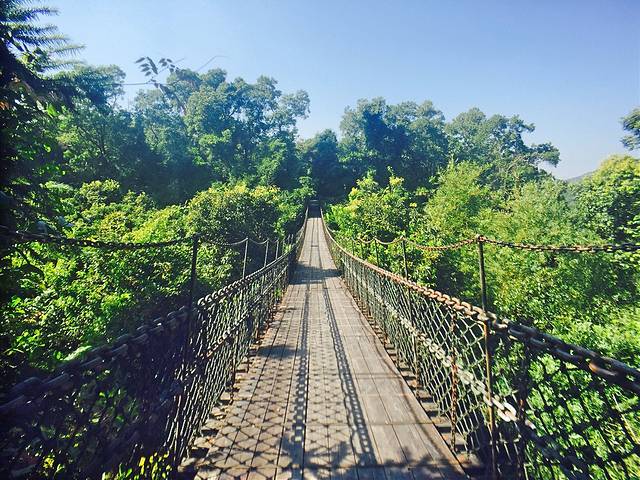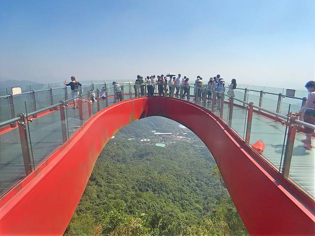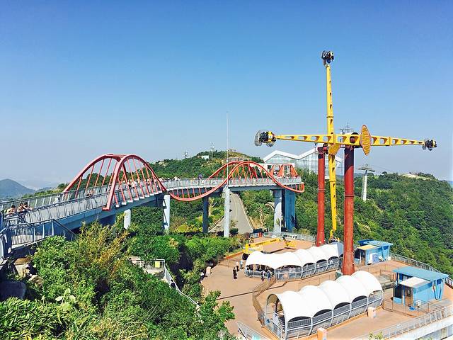 青山和海滨相应景致很棒,上山以后会先走过一道很有特色的桥,然后主要可以玩玻璃桥和高空旋转,山顶景致非常好,同样登顶后也可以选择坐2号火车去茶溪谷。