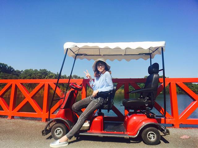到达茶溪谷后因为前一天爬山比较累,我们选择了租两个人骑的小电动车绕谷一圈,虽然有点小贵120元/小时,事实证明这个小电动车真的非常有意思!因为茶溪谷内景点非常非常多,如果要都转完可能需要一天左右的时间,如果不胜脚力的话还是很推荐租个小车的,有顶棚还不晒,一个小时刚好够把茶溪谷绕完。