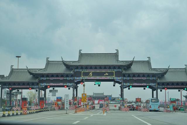 到了眉山收费站,很大气很漂亮~虽然没阳光,但是云层和天空还是很美~空气也很清新。