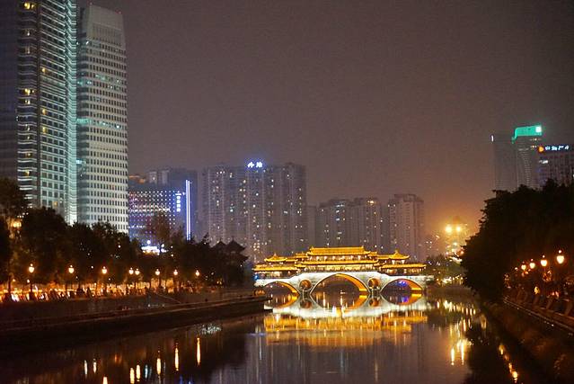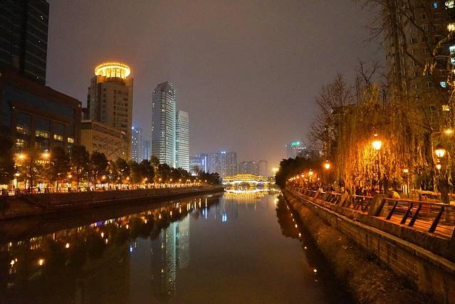 最爱九眼桥府南河附近的夜景,时代巧妙的融合在一起。有高楼、霓虹,也有古色古香的建筑,还配着清澈的、流淌着成都血液的府南河。