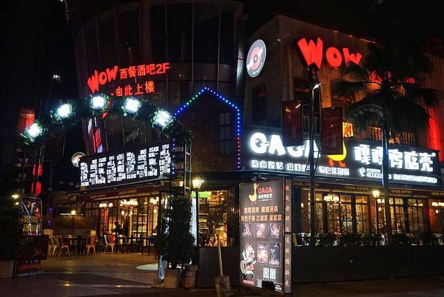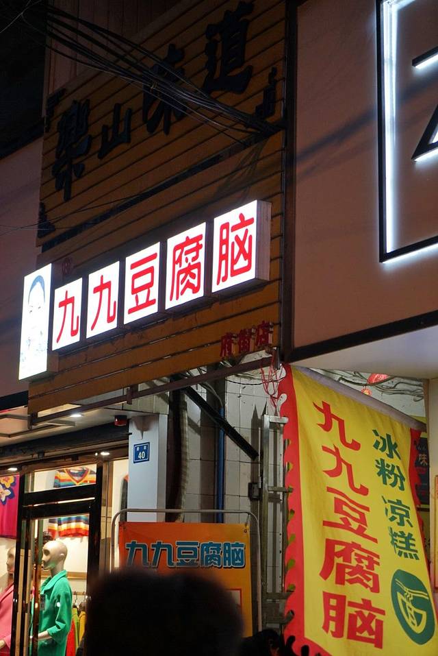 晚上开车去了乐山人民公园,这有一条非常有名的小吃街。就是在电影院和三江女神广场中间。比较著名的几样美食都在这里:九妹凤爪、高四蛋烘糕、九九豆腐脑。