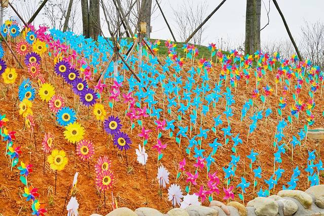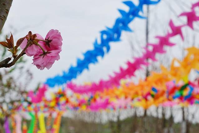 除了樱花,园内还有大量的别的种类的花~并且,装饰了好多各式各样五彩缤纷的风车。