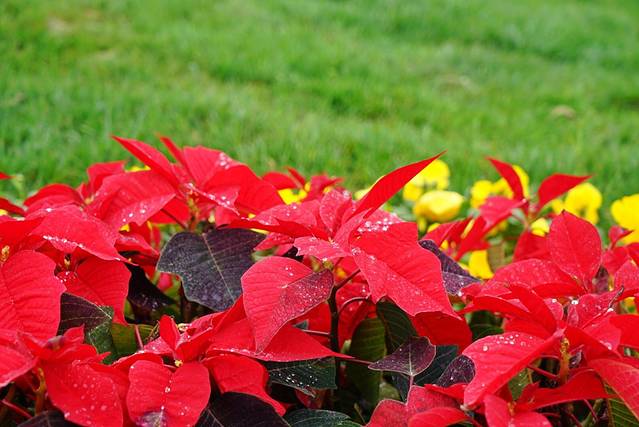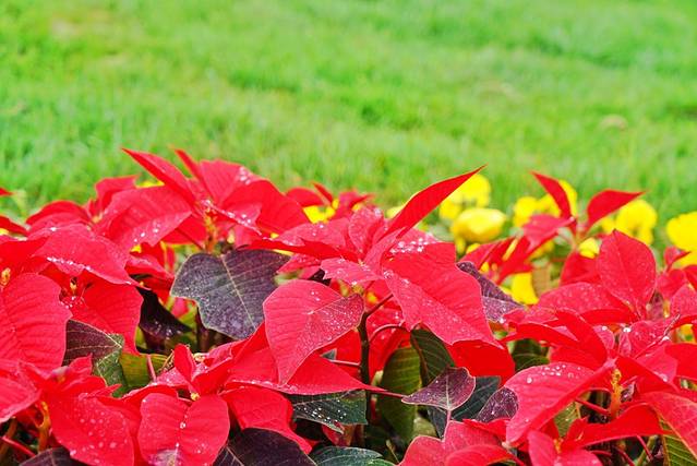 虽然天气不算好,但是花都开了。趁着绿植,显得春意昂扬。