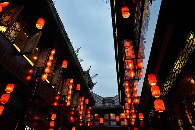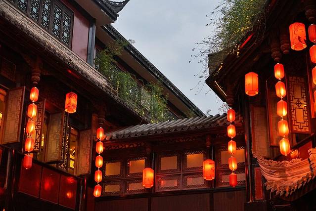 灯笼亮起来的锦里真的最好看~像回到了古时候。