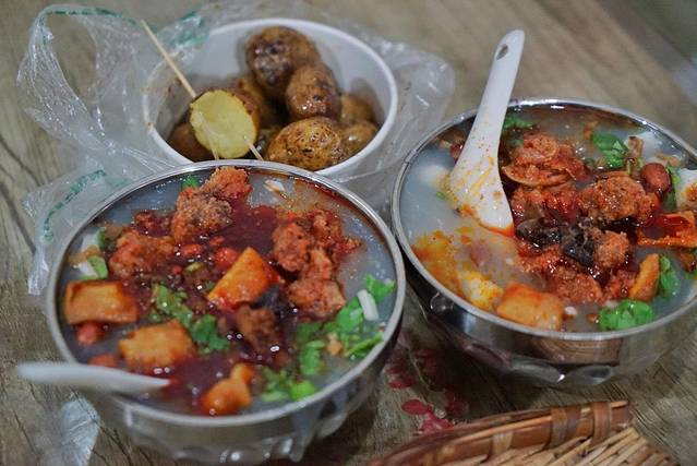 我在九妹凤爪买的怪味土豆,和怪味胡豆的味道差不多,甜甜咸咸酸酸,绝对是值得一尝的味道。豆腐脑是鸳鸯的,牛肉和肥肠双拼。不过忘记让老板少放辣椒,可真是后辣~