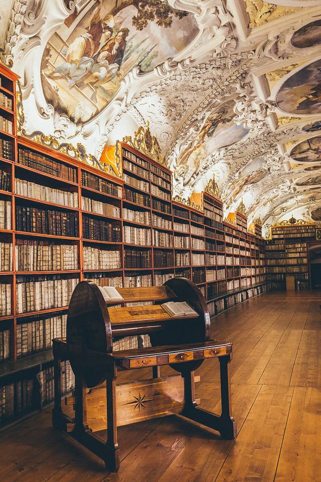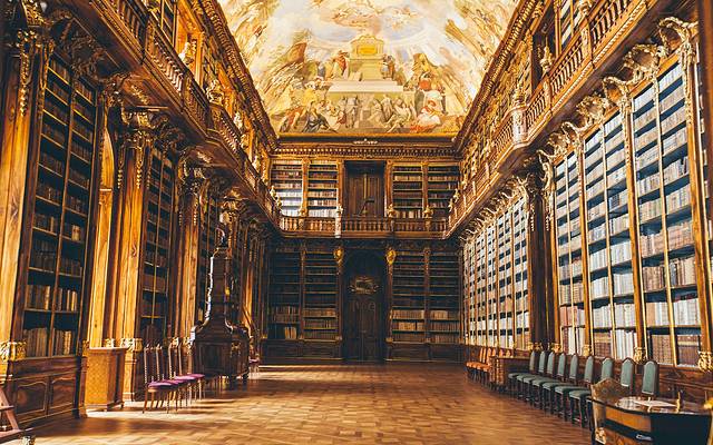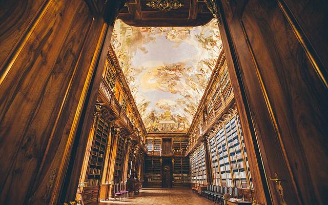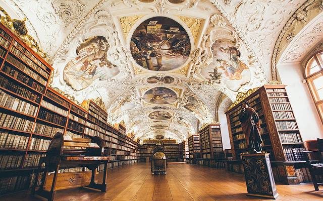 一直对博物馆无爱,相比去人挤人的博物馆了解某个国家的文化,我更倾向于看纪录片。所以对于室内景点,我唯一感兴趣的只剩下教堂和图书馆。已领略过圣维特大教堂的风采,那就找家图书馆陶冶一下情操吧。捷克最大的修道院图书馆斯特拉霍夫修道院神学图书馆可以算是布拉格最值得一去的图书馆,推开大门,从地板到天花板的装饰无不让你领略历史的痕迹,在各种"最美图书馆"一类的排行榜中,它从未跌出过榜单。