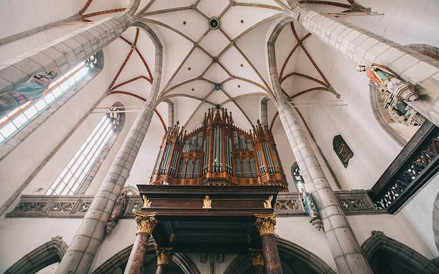 除了精致的圆顶和格子窗,教堂内最大的亮点是位于二楼的这架1716年的巴洛克式巨大管风琴。