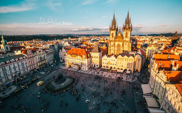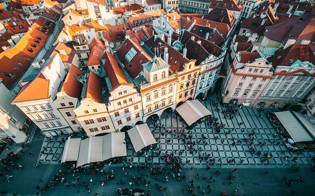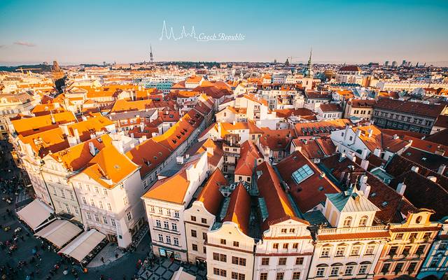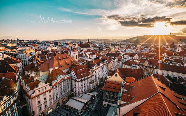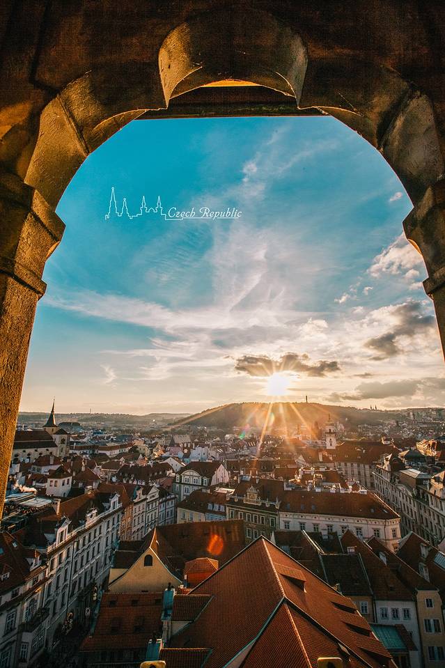 天文钟身后的市政厅塔楼开放登顶,在顶层观景台可以俯瞰整个布拉格,建议在傍晚前登顶,你会看到倾斜的光涂抹着这个城市的每一处,而此时,就是布拉格最美的时间。