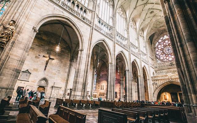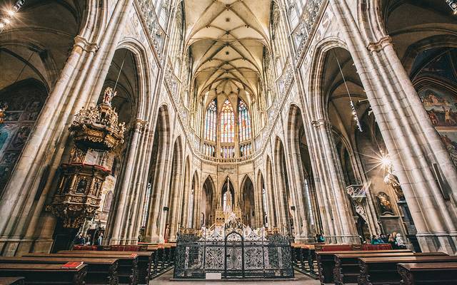 去过德国科隆大教堂的朋友一定会觉得圣维特大教堂非常眼熟,不管是教堂外部的精雕细琢还是内部的穹顶和彩绘玻璃都和科隆大教堂有异曲同工之妙,实际上,他们的设计师就是同一个人!这设计风格,就连我这个外行都能看出是出自同一个人之手。