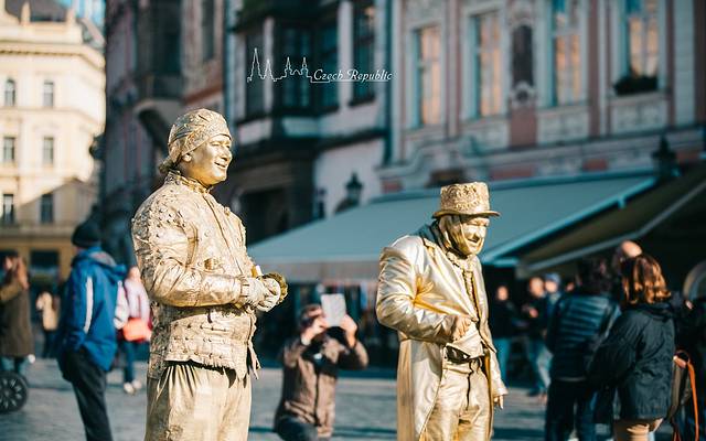 比起那些华丽的建筑群,广场上更为吸引人的要数这些街头艺人们。相比查理大桥,广场的施展空间更大,所以这里的艺术也不仅仅局限于音乐和画画。