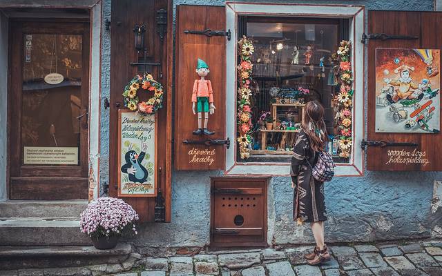和其它小镇不同的是,CK的商业街特别值得一逛,一家家的小店,各有自己的特色,可以通过橱窗看到各种奇思妙想的装饰。这里不卖奢华品牌,只贩卖创意时光。在布拉格一直无暇逛店的我们,终于在这里弥补了遗憾。走遍一条条琳琅满目的小巷,仿佛穿越了几个世纪,随时都会遇到让我们心动的小物,比如几个冰箱贴,一双拖鞋,一个木偶,一套杯垫,又或是几个帽子。当这座小城浸湿在大雨中,我们却风雨无阻的徘徊在各家店铺,从来没有感受到买东西也可以如此有成就感,因为它们满足了我对美好的所有设想。