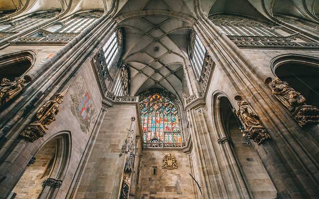 圣维特大教堂历时了6个多世纪才完工,接手过的建筑师不计其数,每一个建筑师都以参与设计为荣,其中就包括查理大桥建筑师彼得的儿子和徒弟。彼得本以为建好查理大桥以后就能得到国王和民众的信任从而得到建造圣维特教堂的建造机会,他没想到的是查理大桥的建造周期比他想象的要长,在他去世后20年,那座桥才竣工,也轰动了世界。他没能完成的心愿,他的儿子和徒弟们替他去实现,造化弄人的是,当他们接手了圣维特大教堂并建造了三分之二时,教堂失火了!这个将近建造了一个世纪的建筑在两天的大火中毁于一旦。大教堂停工了一百年,直到16世纪文艺复兴才重新动工,可以算是史上最命途多舛的教堂了。