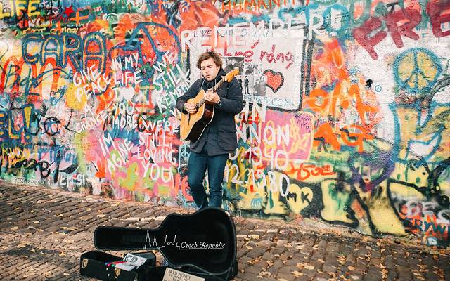 每天,列侬墙前总有艺人驻唱,每一段或欢快或哀愁的旋律都是在向那位已故的灵魂歌手致敬。