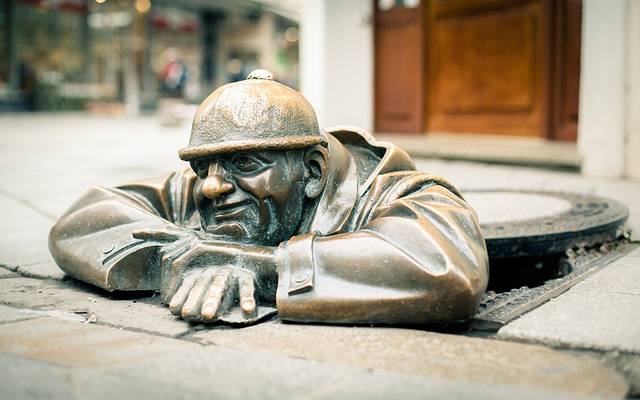 老城区最有趣的莫过于那些千奇百怪的雕像,比如这位工作中的男人,他是这里上镜率最高的明星。我以为当地人设计这座雕像是为了歌颂劳动人民,大叔的笑容看起来很慈祥。