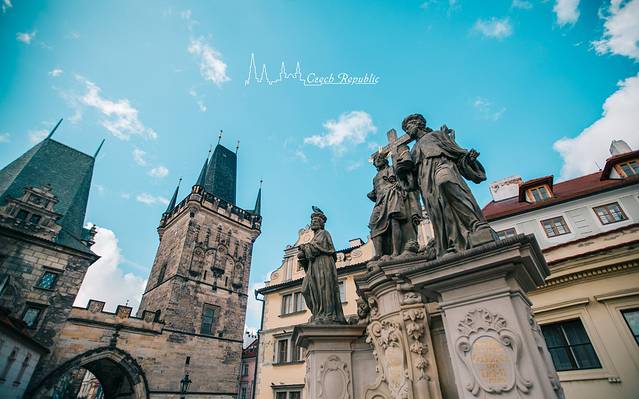 捷克境内最长的河流——伏尔塔瓦河将布拉格分为两部分,左岸老城,右岸城堡山。横跨在河上的十几座大桥雄伟又壮观,其中最著名的是有着四百年历史的查理大桥,这是整个布拉格最具艺术价值的石桥,哥特式的建桥艺术和巴洛克雕塑在这里完美融合。之前看过一个纪录片,说查理大桥的建造者彼得原本是为了将这座桥建好从而得到国王和百姓的信任,以得到建造圣推特大教堂的机会。然而,彼得并没有看到这座桥的落成,在他过世后的20年,这座桥才得以竣工。