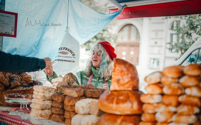 民宿附近有个烟火气十足的集市,每天上午都会聚满当地人,有人在挑选鲜花,有人在采购食材,还有人在吃早餐。我也像当地人一样,排上10分钟买了一杯拿铁,再配上一个石头般硬的面包。事实证明,这两种我并不爱的食物即使是在美丽的布拉格,也没能加分。