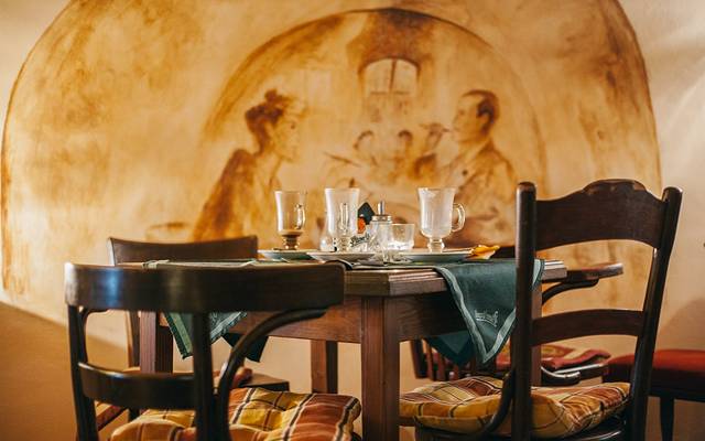 离开城堡,误入了一家洞穴餐厅,虽然并不是由真洞穴改造,但里面的氛围也是足够神秘了。摇曳的烛光,低声细语的人们,以及食物的香气,温暖了这个湿冷的雨天。