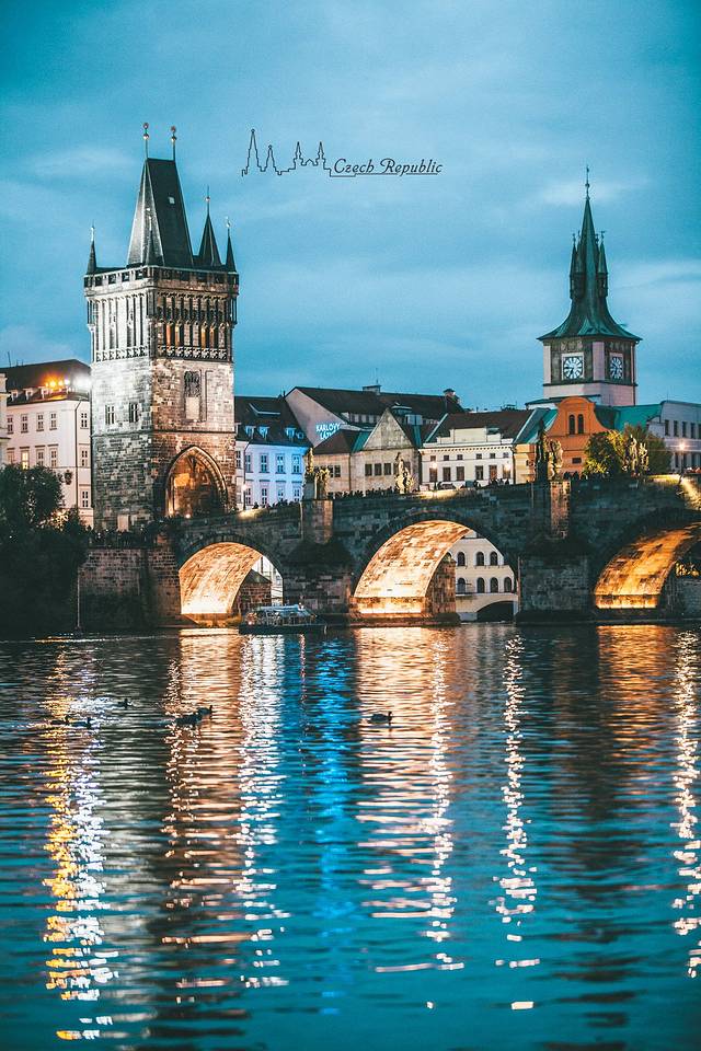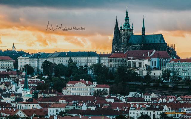 日落以后,天空的色彩反而更绚烂。艳红的天色,仿佛是被布拉格的红顶屋檐所映红,这样的景象,让人忘记了时间,也忘记了一切。